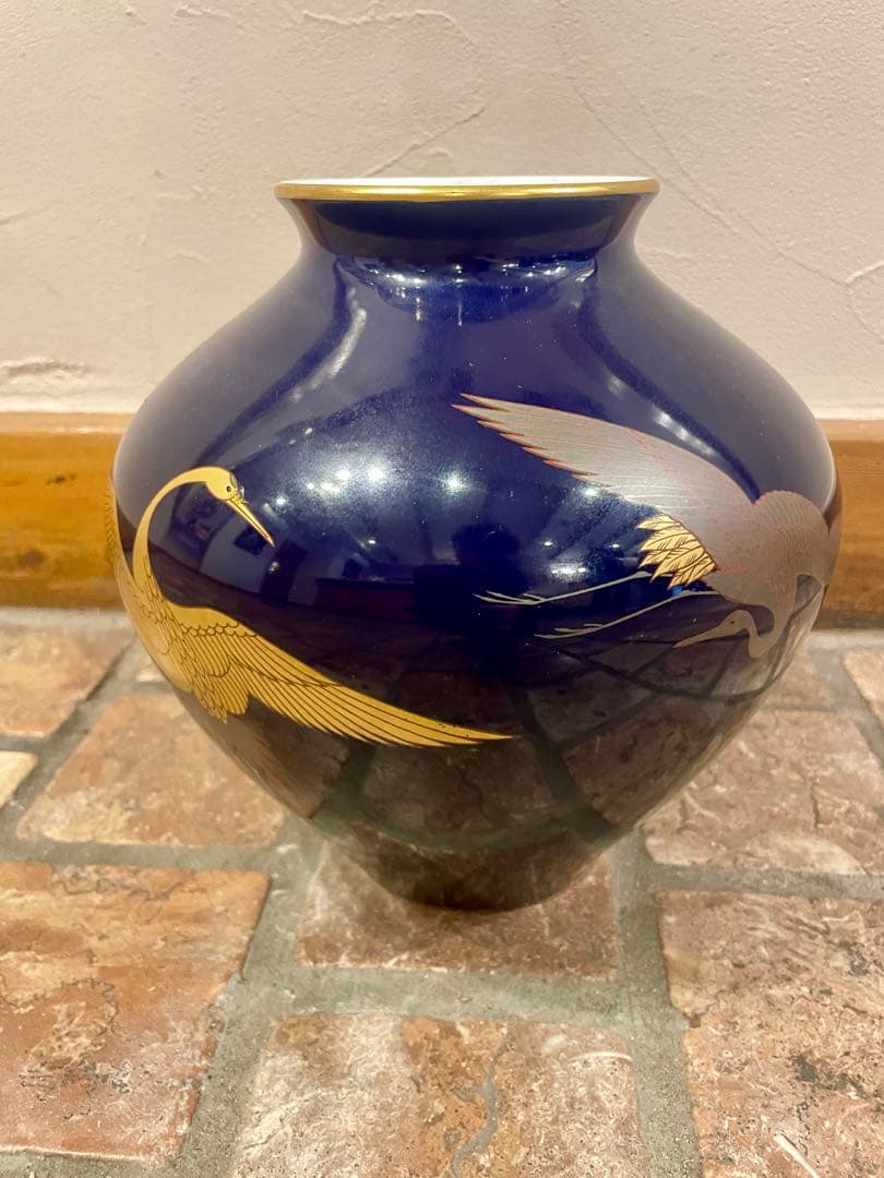 ご覧いただきありがとうございます。有田焼・円左エ門窯による南蛮唐草文の鶴首瓶です。高さ約27cmの程よい存在感があり、床の間や棚飾り、玄関先の花器としても映える一品です。円左エ門らしい柔らかな色調と、南蛮趣味を感じさせる唐草文様が全体に施され、和洋どちらの空間にも合わせやすい雰囲気があります。■サイズ(約)高さ:27cm■付属品・共箱(経年によるヤケ・シミあり)■状態・目立つ割れや欠けはありません・経年による薄汚れは見られますが、 鑑賞を損なうような大きなダメージはありません※詳細は写真にてご確認ください円左エ門の花瓶は年々数が減っており、共箱付きでこのサイズ感のものは探している方も多いかと思います。コレクション整理のため出品いたします。古い陶磁器にご理解のある方にお譲りできれば幸いです。