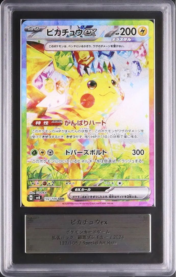 鑑定状況···PSA10※こちらは鑑定済商品となります。鑑定機関(PSA)の定めたグレードを元に販売させていただいております。ケース外部や内部に確認できる傷・異物等に関してのクレームは対応致しかねます。すり替え防止の為、返品交換は一切受け付けておりません。※状態は写真にてご確認いただきご納得頂いた場合のみご購入をお願い致します。神経質な方はお控えくださいますようお願い致します。現状品のため、返品交換、などは一切受け付けておりません。ご使用のデバイスやモニターによって色味が少し違って見える場合がございます。商品の取置きや、領収書の発行は行なっておりませんのでご理解の程よろしくお願い致します。上記ご了承の上ご購入くださいますよう、よろしくお願い致します。#ピカチュウ