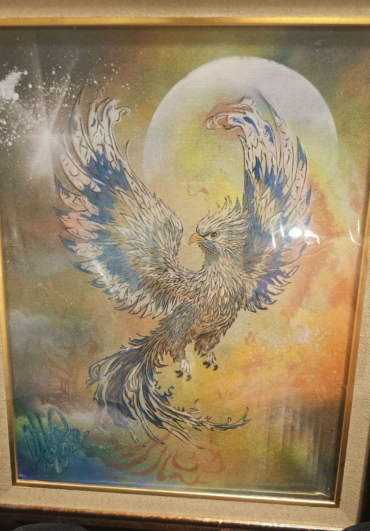 \" 大幅に値下げ ❣ \"\r\r世界にたった1つ! \r超人気作品 ❣ \r*【 市場価格では 額付きF4号の場合: 160,000円(40,000円/号x 4号) 絵のみの場合: 150,000円となっておりますが、デパートや画廊での個展販売からネット販売に切り替え、大幅に値下げ致しました! 】 \r\r<油絵のサイズ> F4号 33.4cmⅹ24.3cm\rサインあり(表に小さく右下か左下、あるいはどこかに自筆で、裏には落款印が押してあります 2013年制作 )\r画法】最初にキャンバスの上にモザイク型に6色(黄、オレンジ、赤、黄緑、青、黒)を塗り、それを下地に絵を描きます。その下地の色がちらほら見え隠れし、それが効果を奏し魅力的な絵になっています\r\r◼<額縁のサイズ> 約 48 cm x 40 cm (額により多少異なります)\r◼<額縁の色>( 青緑+金色の枠) / どの絵にもなじみ、お部屋が落ち着きます\r*フック付き\rこのフックは釘が斜めに壁に入るため、抜いた後でも穴の跡が目立ちにくいです 掛ひもはご購入時のままフックにお掛けください 表から掛ひもやワイヤーが見えないため、すっきりと美しく飾れます\r\r◼ 絵のみ (50,000円) 又は他の色の額付きご希望の場合は【 F4-051713 】でご検索ください\r\r\r作家紹介 \r菅家令子(かんけりょうこ) 洋画家 創作写真家\r\r個展/展覧会\rニューヨーク パリ,カンヌ / フランス ミュンヘン /ドイツ シカゴ ウイーン / オーストリア 東京 他\r\r出版物\r「写真集」 “ 女R-I ” 永久保存 \r近代美術館(MoMA) / ニューヨーク スミソニアン博物館 / ワシントン\r「絵本」 \" ん\" \r「論文」 “ 写真表現における芸術性について ” 日本写真芸術学会\r\r\r#絵画 #洋画 #絵 #油絵 #インテリア #モダン #おしゃれ #モダンアート #癒し #魅惑的 #豪華 #高級感 #結婚祝い #プレゼント #出産祝い #新築祝い #建築祝い #開店祝い #開業祝い #祈り #奇跡 #希望 #幸運